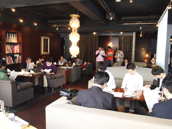総会風景。今回は大阪梅田近く 中津のダイニングサロンOOZEにて。